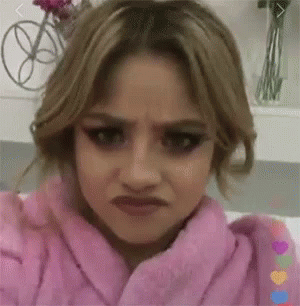 Karol Sevilla makes a funny, displeased face while looking directly at the camera, wearing a pink robe.