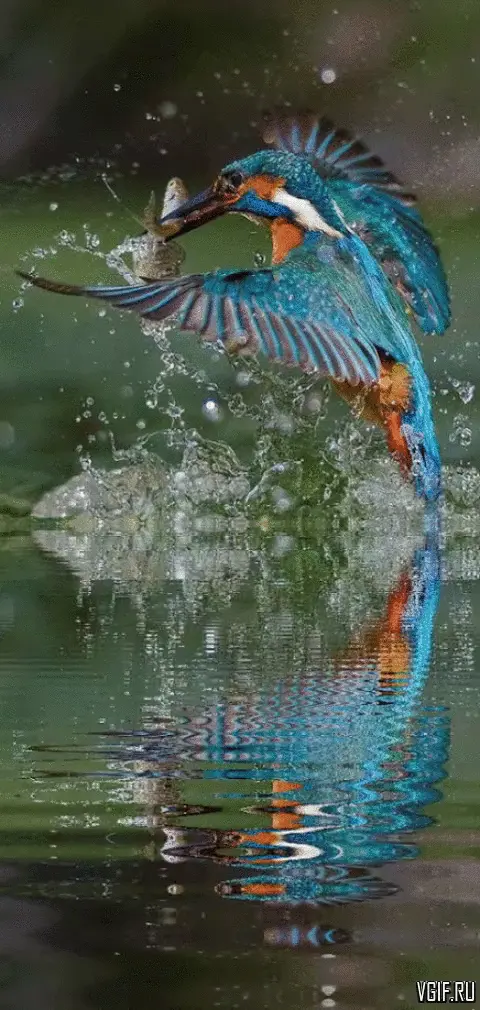 Карыч Каркарыч, the blue cartoon bird with a yellow beak and pink feet, looks around.