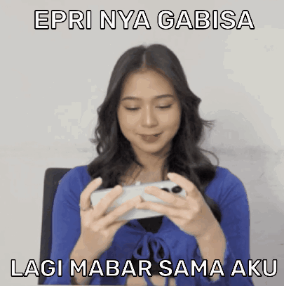 Kathrina JKT48 playing on her phone with the caption 'Epri can't play multiplayer with me anymore'.