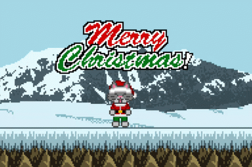 Pixel art kitty in a Santa hat wishes you a Merry Christmas from Kauer Games' Warriors Of Ari.