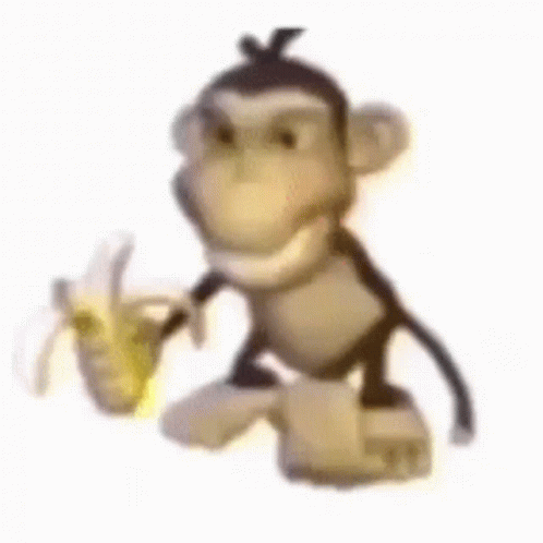 The cartoon Kaugulskaya monkey Chichi happily eats a banana, a simple and charming animation.