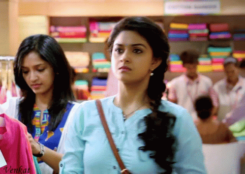 Keerthy Suresh and another woman, possibly Kavya, shopping in a store.
