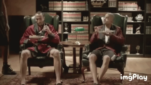 Kawhi Leonard and a teammate in a humorous skit, first in fancy robes, then in Spurs jerseys, with the caption 'Indubitably'.