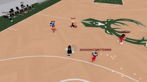Kb Brick makes a shot in an exciting Roblox basketball game.