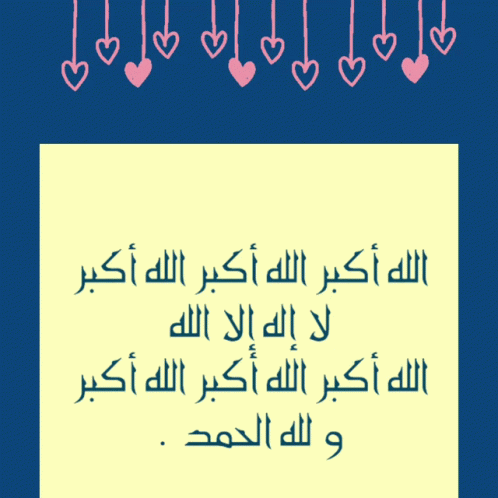 Arabic prayer (Takbirat) for Eid and Hajj, displayed on a blue background with pink hearts.