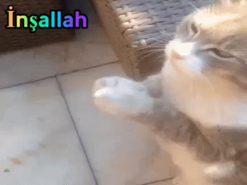 A cute cat makes a gesture resembling prayer with its paws, accompanied by the text 'İnşallah' (God willing).
