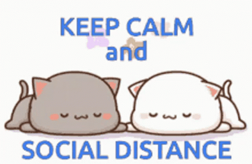 Two cute cartoon cats, similar to Peachcat, lying down with the message 'Keep Calm and Social Distance'.