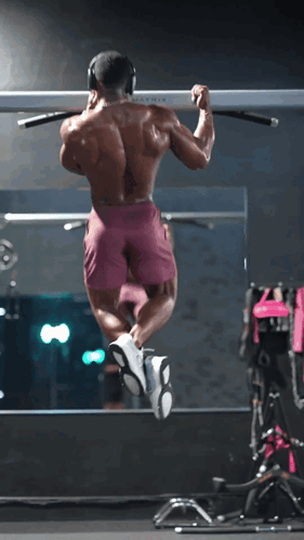 Keffa Ashton Hall demonstrates an intense gym workout, performing pull-ups and various back exercises.
