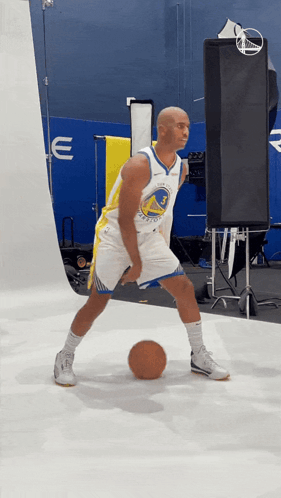 Keffa Chris Paul showcasing his dribbling skills in a Golden State Warriors jersey during a photoshoot.