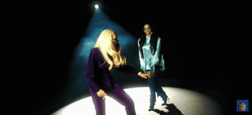 Loredana and Juju perform a dynamic dance routine to 'Kein Wort' on a dark stage under a bright spotlight.