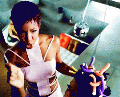 Kelly Rowland, from Destiny's Child, playfully acts as a hairdresser, styling hair with colorful curlers.