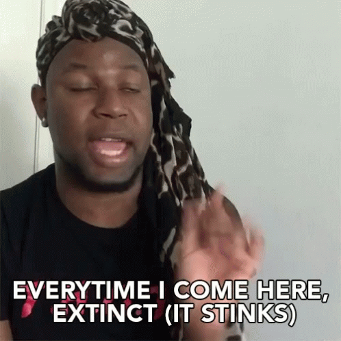 Kelz Washington reacts strongly to a bad smell, exclaiming 'It stinks!' and 'That is so disgusting'.