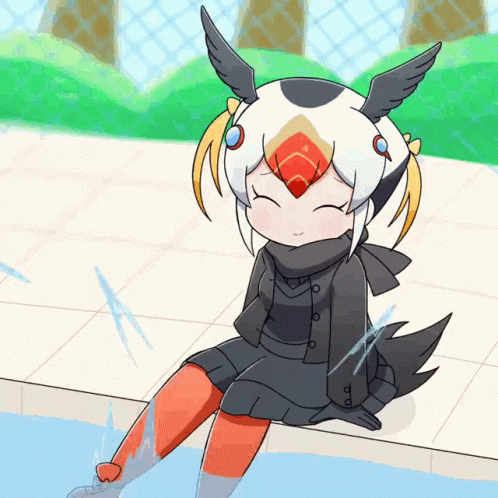 Tufted Puffin from Kemono Friends happily splashes her feet in the water.