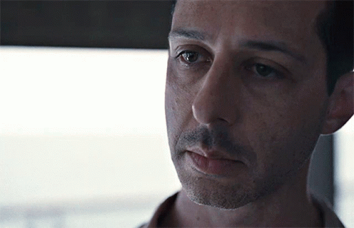 Kendall Roy from Succession with a serious and contemplative expression on his face.