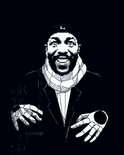 Kendrick Lamar in a black and white glitch art animation featuring meme elements, phonk music, and a trollface.