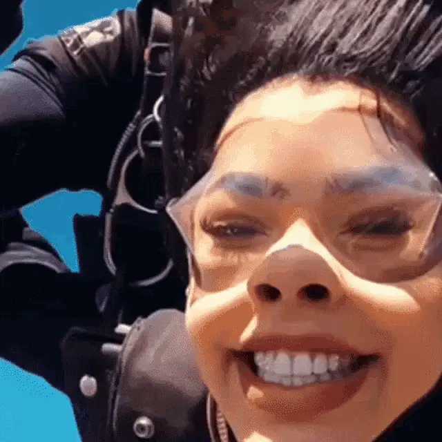 Kenia Os smiles brightly, wearing a black top with 'YO ME LA' text.
