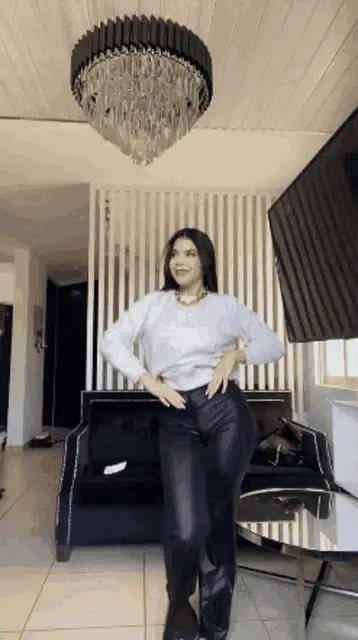 Keninis Keniaos, a woman wearing sunglasses and a white shirt, opens her mouth wide in an expressive moment.