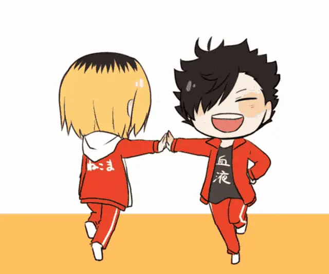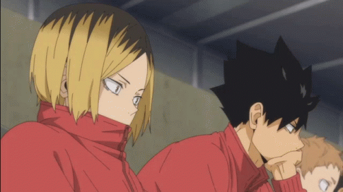Kenma Kozume and Kuroo Tetsurou from Haikyuu!! sitting together in their red jackets.