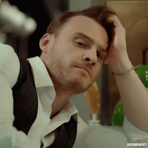 Kerem Bursin as Serkan Bolat in a thoughtful close-up, resting his head on his hand.