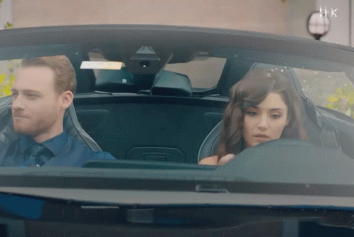 Kerem Bürsin (Serkan Bolat) and Hande Erçel (Eda Yıldız) share a romantic moment in a car.