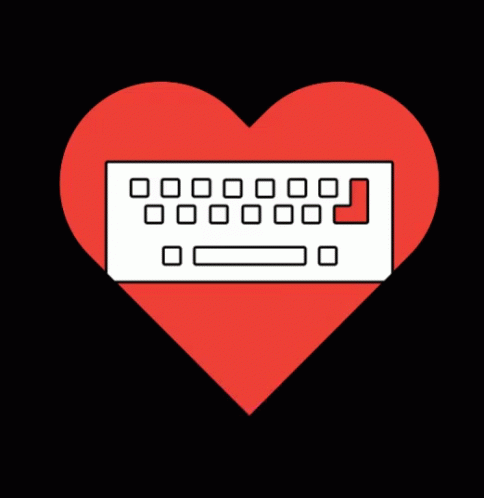 Three hands of diverse skin tones unite on a keyboard, symbolizing teamwork and love within a heart shape.