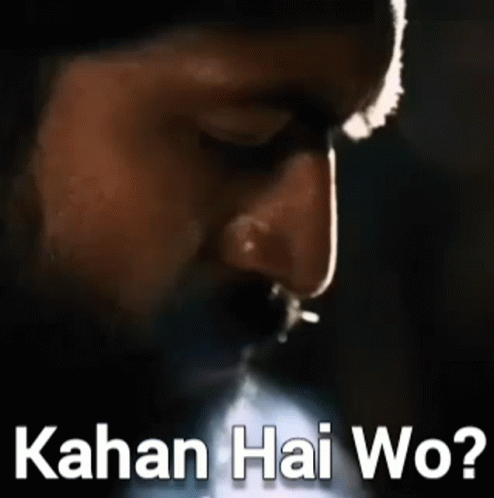 Rocky Bhai from KGF Chapter 2 with an intense look, asking 'Kahan Hai Wo?' (Where is he?).