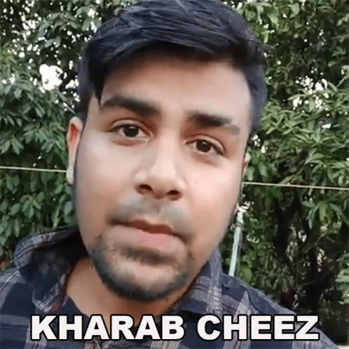 Abhishek Sagar making a funny face with 'Kharab Cheez' text, expressing a 'bad thing' sentiment.