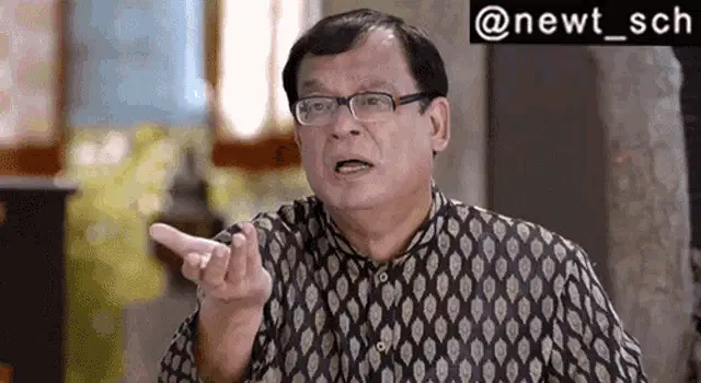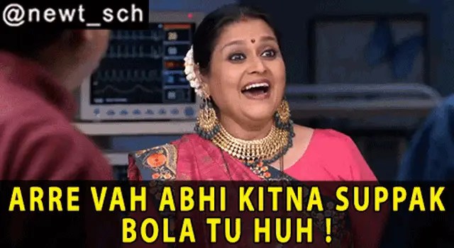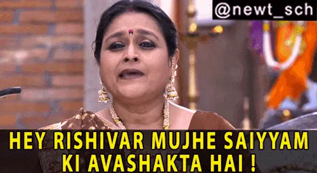 Hansa from Khichdi, played by Supriya Pathak, shouts for a rickshaw with her arms outstretched.