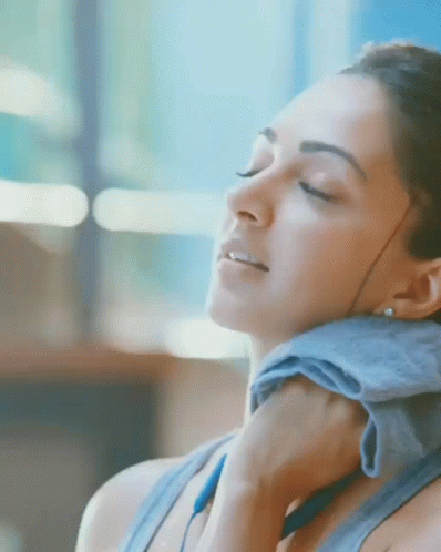 Kiara Advani takes a moment to rest and cool down after an intense workout, with a towel around her neck.