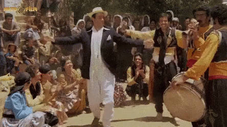 Kibar Feyzo dancing energetically at a traditional outdoor wedding celebration with live music and a cheering crowd.