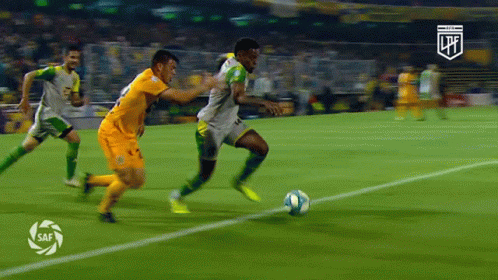 A football player attempts a kick during a match in the Liga Profesional De Fútbol De La Afa.