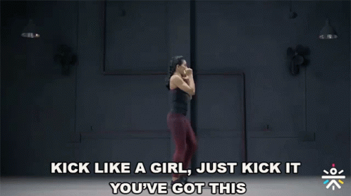 Shwetambari Shetty demonstrates a powerful kick, encouraging viewers to 'Kick Like A Girl' in this workout.