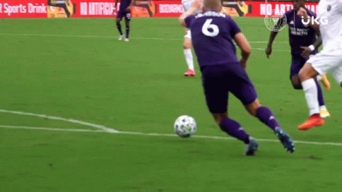 A soccer player with number 6 on his back kicks the ball during an Inter Miami CF match.