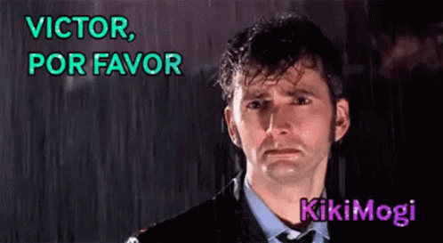 Kikimogi Kiki features Victor, a man in a suit, crying sadly in the rain with the caption 'VICTOR PLEASE'.