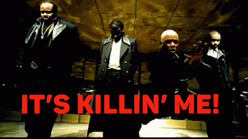 A music video clip featuring a group of men in dark attire with the text 'IT'S KILLIN' ME!' displayed.