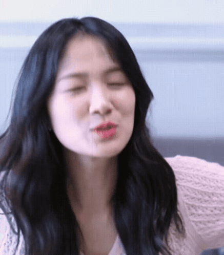 Actress Kim Hyeyoon makes a playful kissing face, likely from her role in the drama 'Lovely Runner'.