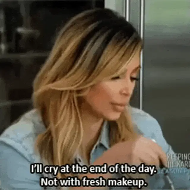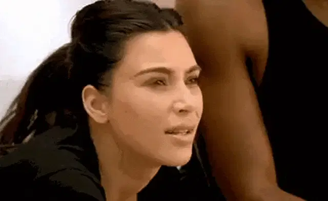 Kim Kardashian fanning a stack of money with a confident expression against a blue background, showcasing her wealth.