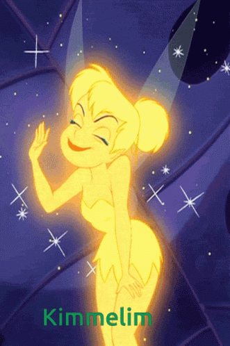 Animated Tinker Bell glowing brightly with the name 'Kimmelim' overlaid, a fun Disney character.
