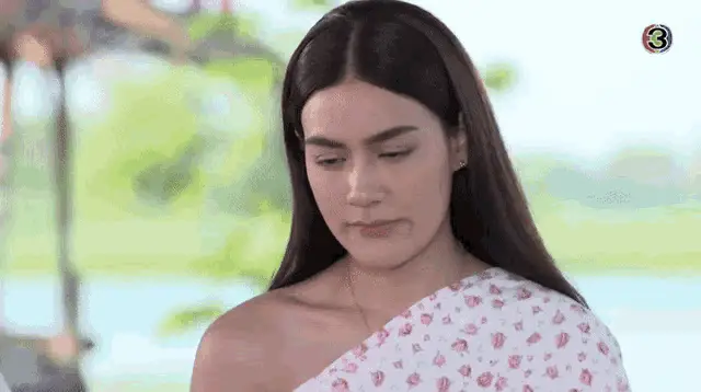 Kimberley Anne Woltemas sitting gracefully in a traditional Chaba-style outfit, featuring a blue top and purple pants.
