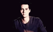 Dylan O'Brien from Teen Wolf blows a kiss, bringing his hands together then spreading them out.