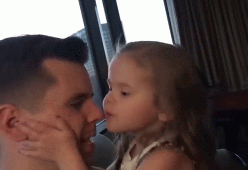 Claire Crosby gives her father a sweet kiss on the cheek, showing affection in a heartwarming moment.