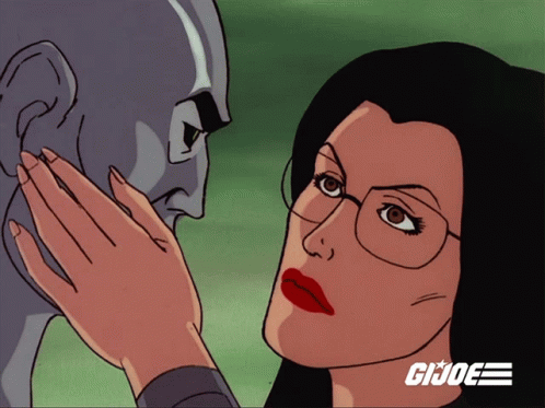 Baroness shares a passionate kiss with Destro from the classic animated series G.I. Joe: A Real American Hero.