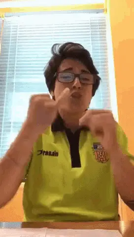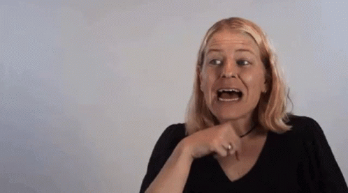 Woman demonstrates the 'Kiss Fist' sign in American Sign Language, making a funny face.