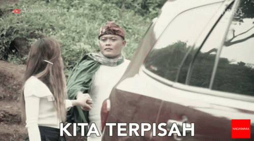 A man and woman part ways in a poignant scene from the music video 'Kita Terpisah Selamat Tinggal'.