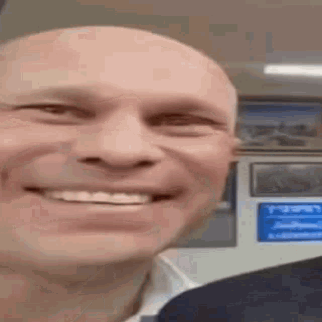 Ilya Kiva, a bald man, smiles broadly at the camera, showing a cheerful expression.