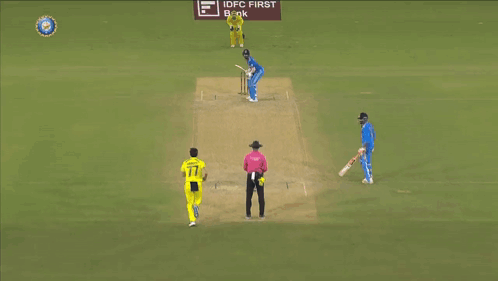 KL Rahul bats against Sean Abbott's bowling during an exciting cricket match in India.