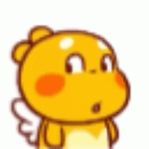 A cute yellow cartoon character with small wings laughs happily, eyes closed and mouth open.