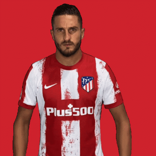 Koke Resurreccion, Atletico de Madrid captain, points to his head in a thoughtful gesture.