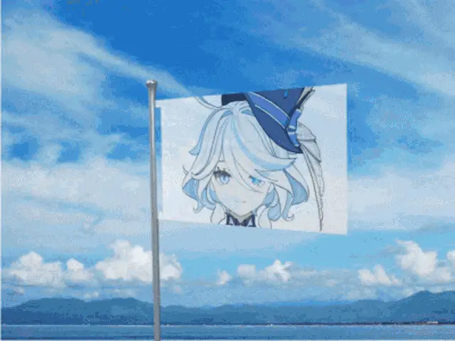 Sangonomiya Kokomi, a girl with pink hair and blue eyes, is shown in a blue and purple dress, deep in thought.