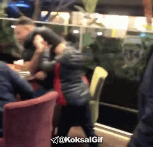 Koksal Koksalbaba engages in a playful scuffle with a friend in a restaurant, captured with the @KoksalGif watermark.